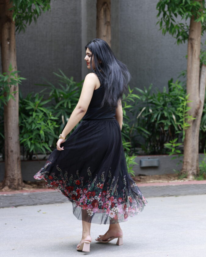 Tarini Netted Black with red floral skirts – Women’s Skirt