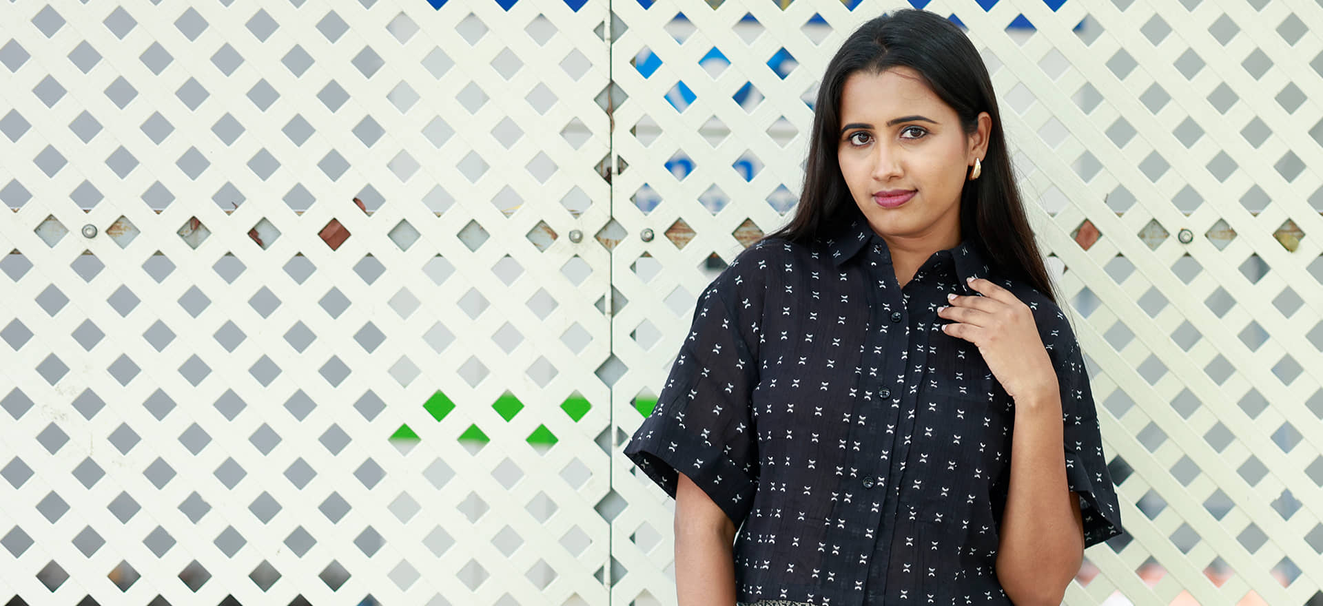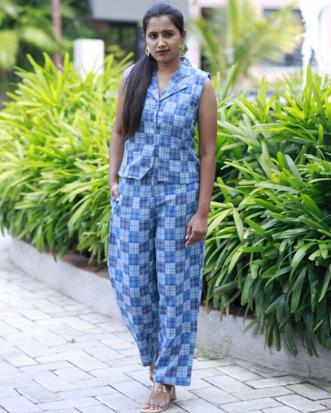 TaviGrid – Cotton Patchwork Blue Checks Co-Ord Set for Women