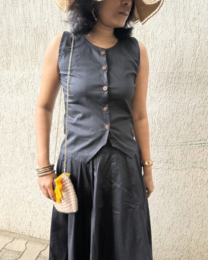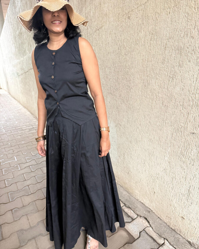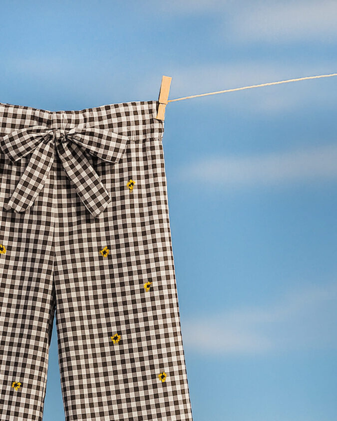 ChessaBloom – Black & White Checked with Yellow Floral Cotton Co-Ord Bottoms for Women