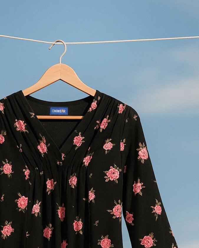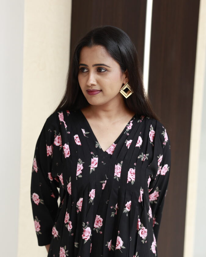 RosaVelin – Reyon Black with Rose Flower Print Top for Women
