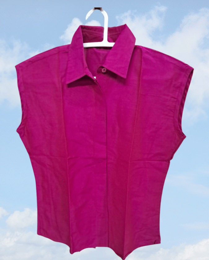 Meira – Pink Sleeveless Dupion Silk Top with Collar for Women