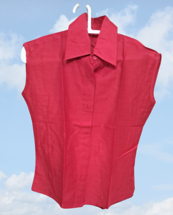 Meira – Red Sleeveless Dupion Silk Top with Collar for Women