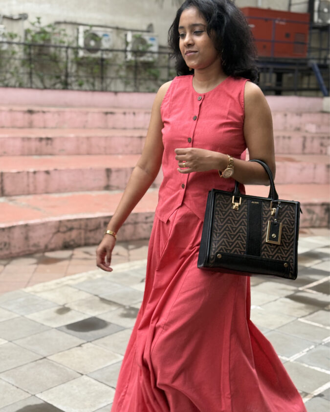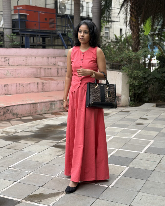 Coral – Panel Skirt with Sleeveless Waistcoat