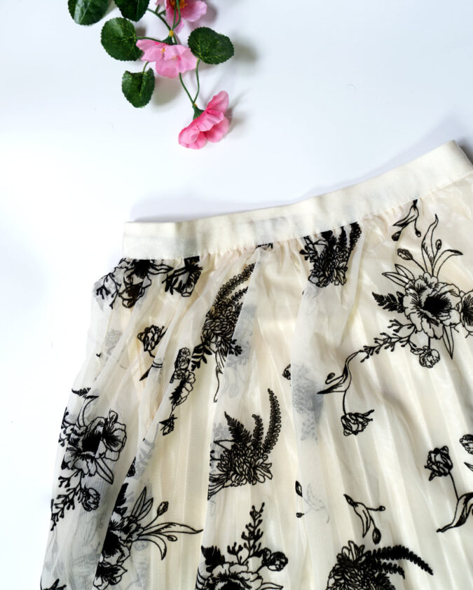 Lavika Netted White with Black embossed skirts – Women’s Skirt