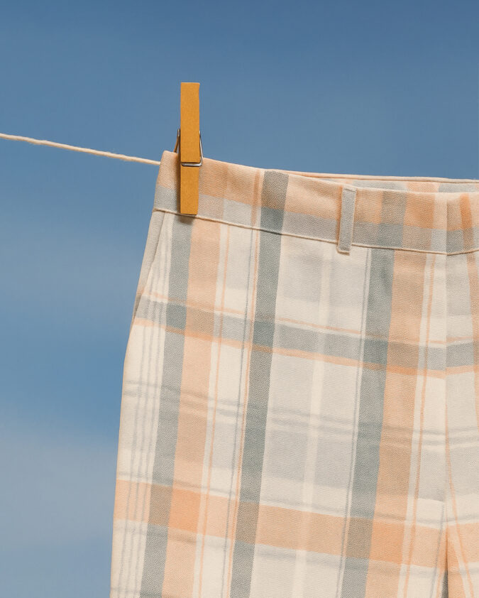 The wide bottom fit allows easy movement and a relaxed silhouette, while the back elastic and front waistband ensure a secure, comfortable fit. Designed with side pockets and a ticket pocket on the waistband’s inner edge, these pants are both practical and stylish.