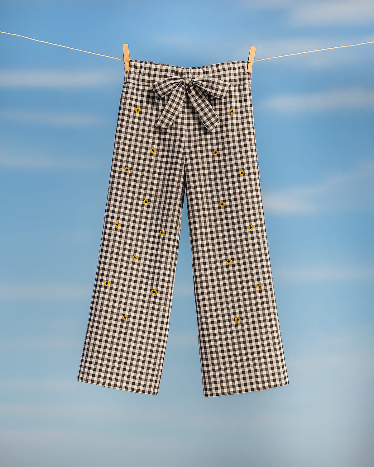 ✓ Black & white checks with yellow floral accents for a striking look