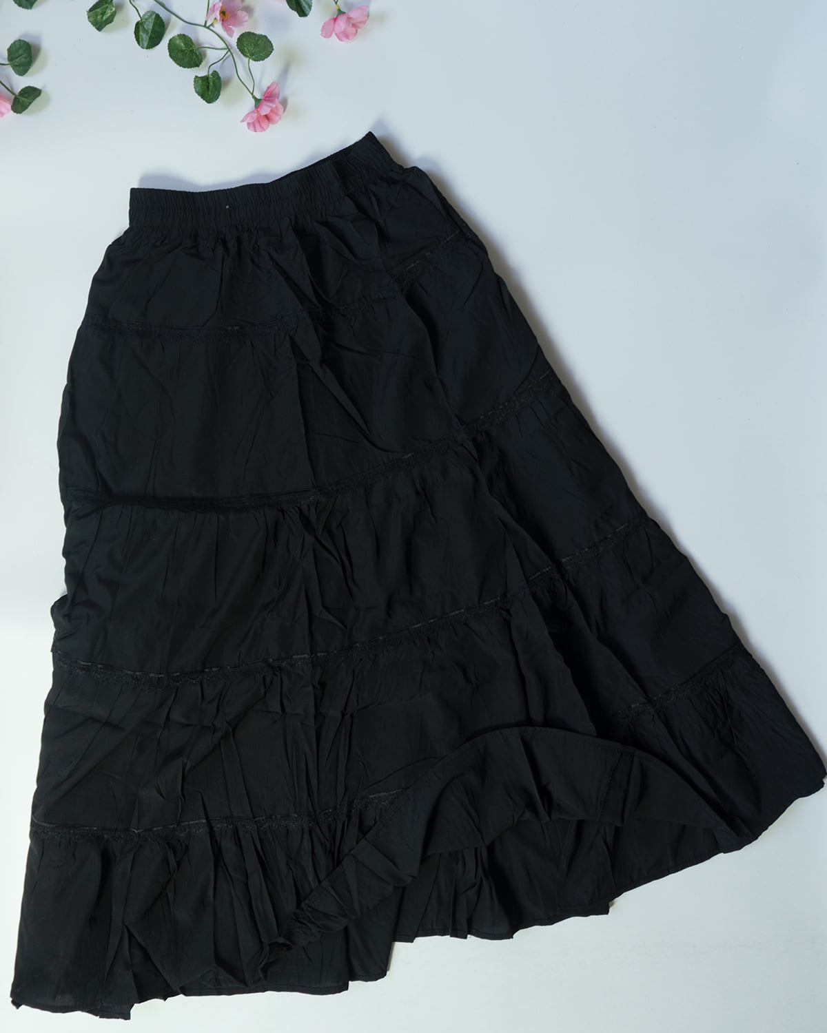 Available in Black, the Kanira Layered Skirt is ideal for evening wear, festive occasions, and casual-chic styling, adding grace and sophistication to your wardrobe.