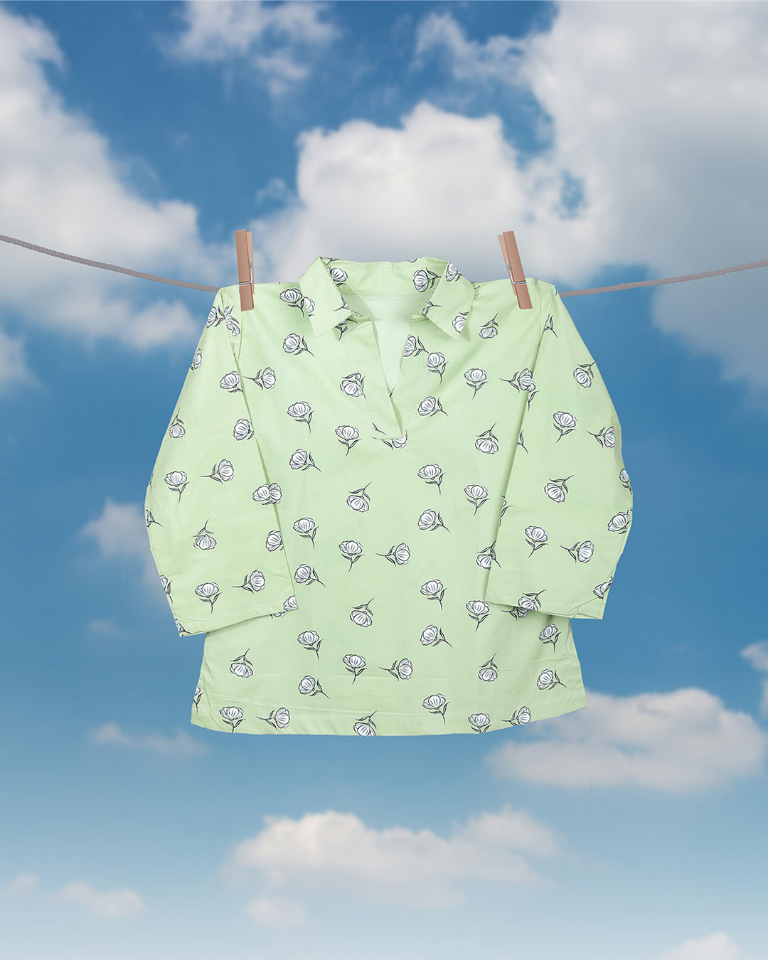 Elevate your style with the Noir Garden Indo-Western Green Shirt with Black Rose Print for Women. Designed with a bold oversized collar, this shirt brings structure and elegance to your look. The breathable, lightweight fabric ensures all-day comfort, while the nature-inspired black rose prints add a fresh, chic vibe.