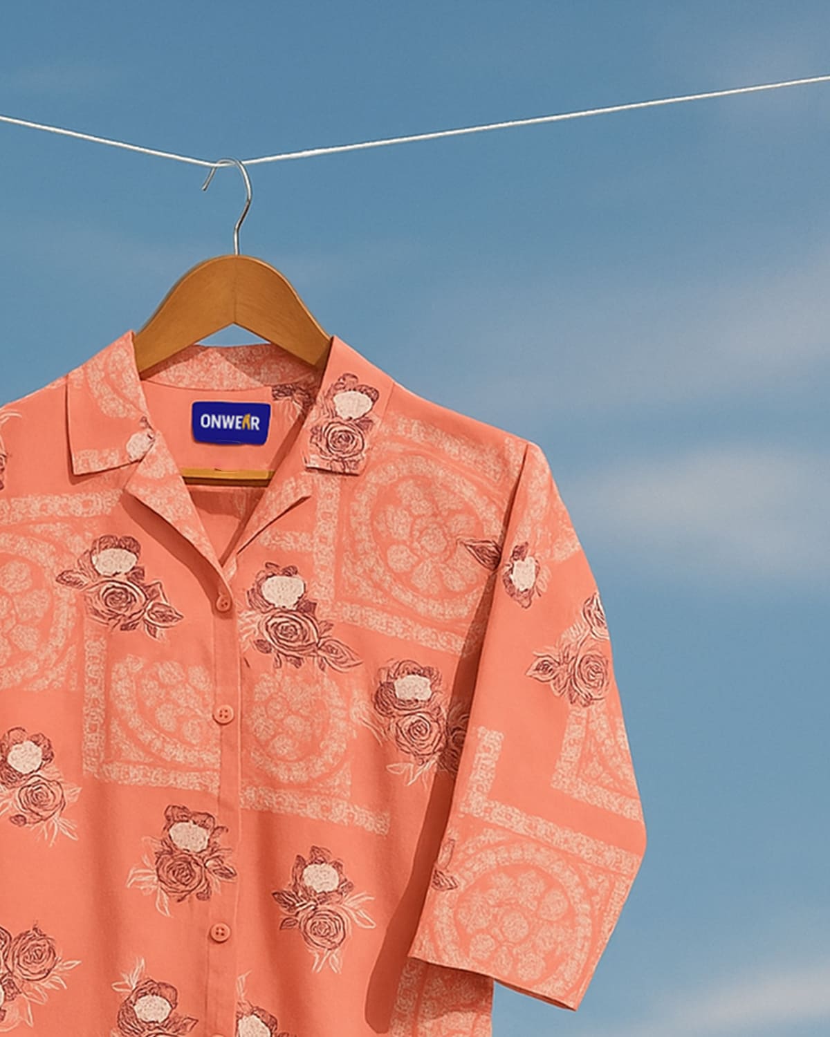 Bold, breathable, and beautifully balanced — Tanirika is an Indo-Western shirt designed for women who love style with substance. Crafted from lightweight fabric, it features a dark peach base with black and white prints, adding a refreshing, nature-inspired touch to your wardrobe.